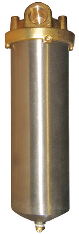 Bay-TechThe filter canisters are stainless steel with brass head and have manual drain. Inlet & Out are 3/4"-Fpt Elements are sold separately. See Part...